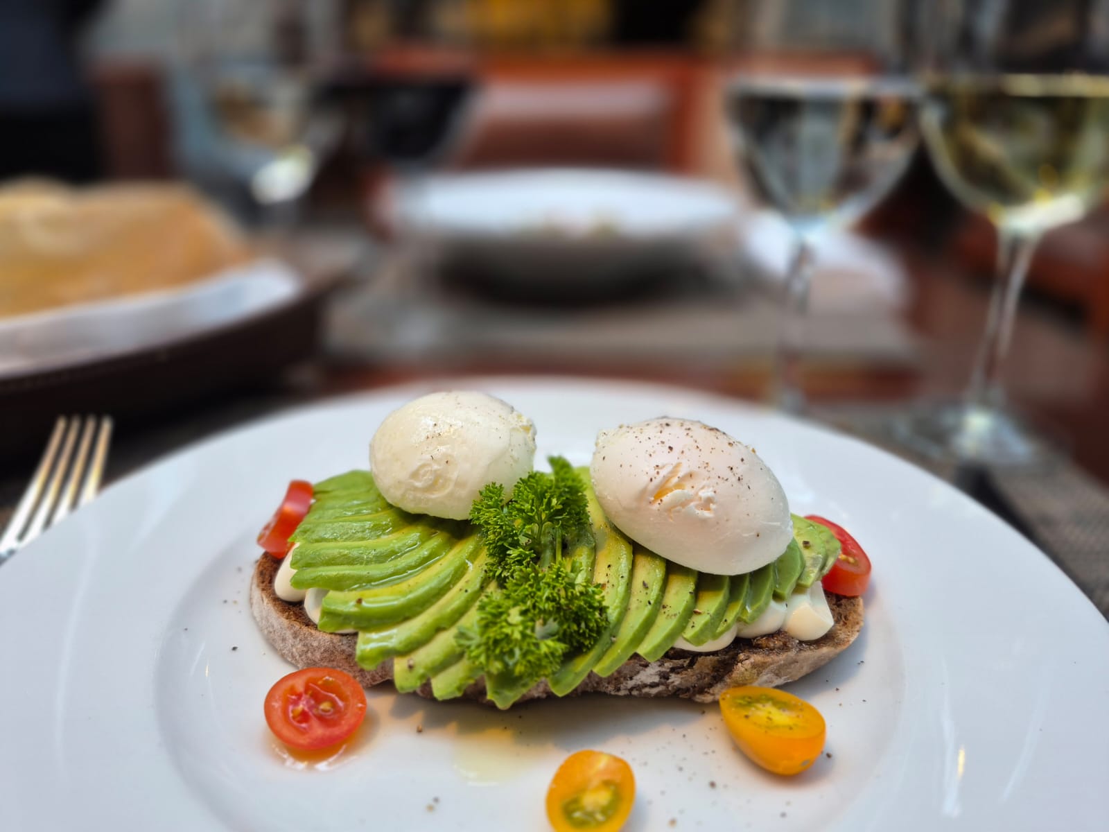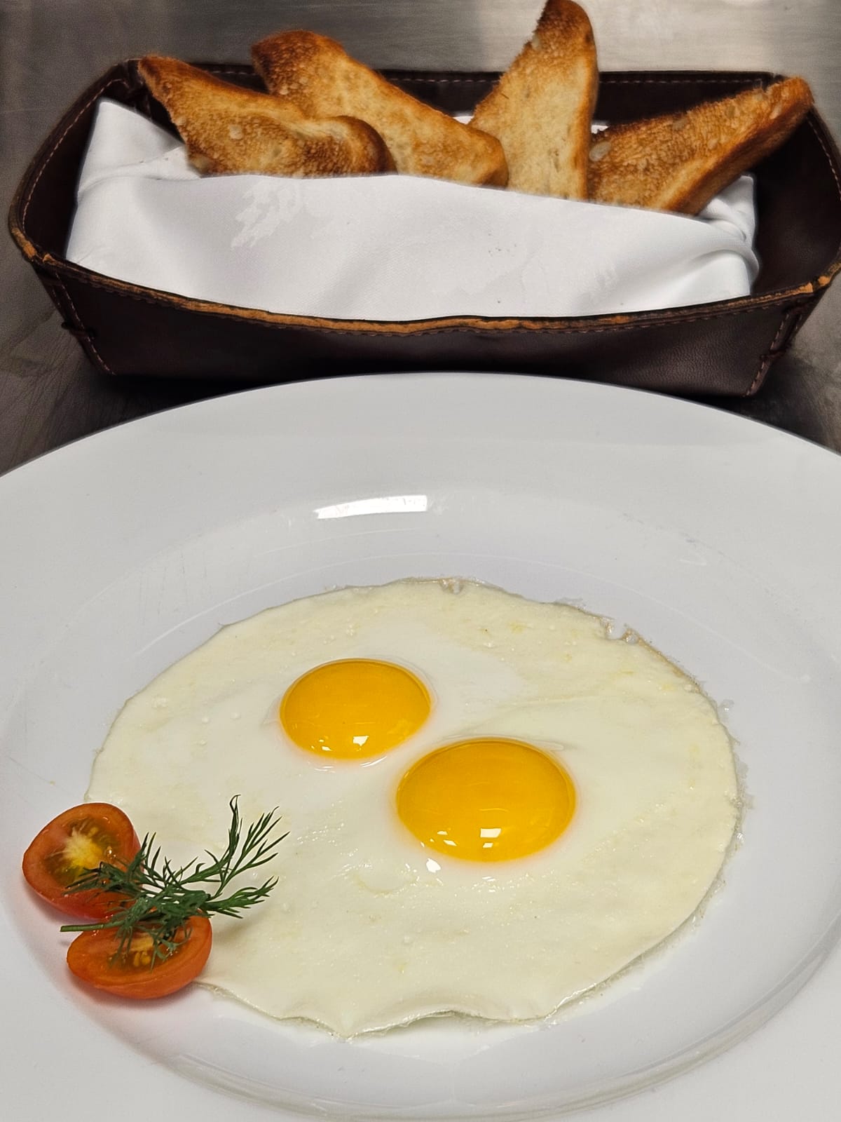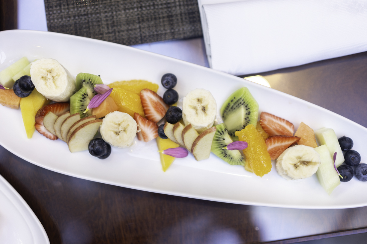 Café espresso, descafeinado, americano. Té clásico o en hebras. Jugo de naranja. Fiambres y quesos artesanales, huevos revueltos, salchichas, panceta, tomates cherry, yogurt, mix de cereales, selección de tostadas, mermeladas, viennoiserie, patisserie, frutas de estación.